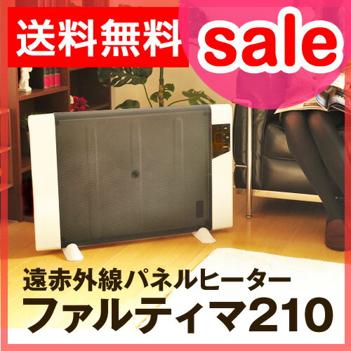 【あす楽(一部地域及び日曜除く)】【ラッピング不可】【「レビューを書く」ご選択でオマケ特典あり】■サイズ約 幅84×高さ56×奥行き24.5(cm)※本体のみ コード長:約約 3m■重 量 約5.9kg■消費電力 400W/ 800W/1200W■電気代(1時間あたり)[通常運転時]400W:約9円 800W:約18円 1200W:約26円※設定温度の±2℃まで室温が近づくと、自動的に断続運転に切り替わります。■電源 AC100V 50/60Hz■適応床面積 鉄筋コンクリート:約10畳■保証 メーカー保証1年間■付属品 保証書付き取扱説明書、スタンド×2、ネジ×6、スタンドパッド×2■備考 OFFタイマー機能:1時間後〜最大23時間後まで、1時間刻みで設定。■注意 ※一気に暖めるタイプではありません。じんわりと暖めるタイプです。※ご使用前にスタンドを取り付ける作業がございます。(プラスドライバーが必要です。)※キャスターは付いていません。 19,800円→14,800円(税込) 【今ならレビューで温湿時計TRAFFのオマケ特典あり】 遠赤外線パネルヒーター ファルティマ210 FALTIMA210 暖房器具 タッチパネル式 遠赤外線で体の芯からぽかぽか 安全・クリーンなパネルヒーター 大型パネルの遠赤外線パネルヒーター、FALTIMA210はパワフルで安全性が高く、操作もシンプル! 一つずつご紹介していきたいと思います。 ● 遠赤外線であたたかい 遠赤外線は人や壁に吸収されるという特徴を持っています。空気だけじゃなくお部屋の壁も温まるので、陽だまりのような暖かさが持続するのです。 さらに、FALTIMA210は即暖性にも優れているのがポイント。実際に日本の研究機関で測定したところ、8畳の木造のお部屋が30分で6℃から18℃まで上昇しました! ● 安全&クリーン パネル表面にはフロッキー(植毛)加工が施されているので、使用中に触ってもやけどせず、とっても安全!お子様やペットのいるご家庭でも安心してお使いいただけます。 さらに、燃料を使用しないので空気が汚れない!風が出ないのでホコリも巻き上がらず、肌や喉の乾燥も気になりません。さらに、転倒時OFF機能、温度ヒューズの安全機能もついていて、万が一何か起きた際も安心です。 ● シンプルな操作性 シンプルなデザインのタッチパネルで操作します。 ・1〜23時間後まで設定できるオフタイマー ・自動的に温度調節してくれる、室温設定 ・400W/800W/1200Wの消費電力の切替 以上3つの調節を指一本で簡単に行えます。 延長コードは3mのロングサイズ。 また、パネルの厚みは5.5cmとスリムなので、ちょっとした隙間にしまえるのも嬉しいです。床を傷つけないためのスタンドパッドも付いています。 効率よく暖めるため、お部屋の窓際に置いて使用するのがオススメですよ♪ 遠赤外線パネルヒーター ファルティマ210 FALTIMA210