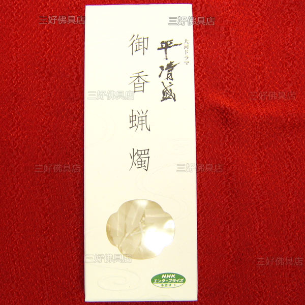 大河ドラマ 平清盛 清盛が活躍し愛した瀬戸内の海と、清盛が崇拝した厳島神社をアクアノートに海藻エキスを配合して仕上げましたので、ろうそくを灯すと潮騒の香りが楽しめます。NHKとカメヤマがコラボして10分のローソクになりました。ローソクの燃焼時間は使いやすい10分です内容 馨香蝋燭 144本入り燃焼時間 約10分縦・横・高さ 16cm×6cm×3.5cm 蝋燭の直径・長さ 0.75cm×2.4cm平清盛 御香蝋燭 潮騒の香りの10分蝋燭 大河ドラマ 平清盛 をイメージした蝋燭ができあがりました。 NHKとカメヤマがコラボして10分のローソクになりました。 ローソクの燃焼時間は使いやすい10分です 清盛が活躍し愛した瀬戸内の海と、 清盛が崇拝した厳島神社を アクアノートに海藻エキスを配合して仕上げましたので、 ろうそくを灯すと潮騒の香りが楽しめます。 平清盛 潮騒の香りのお線香はこちらから